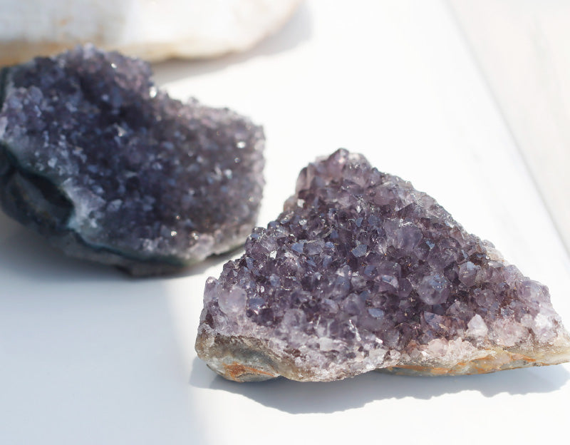 アメジスト(紫水晶)が自然な形で密集して成長した「アメジストクラスター」。